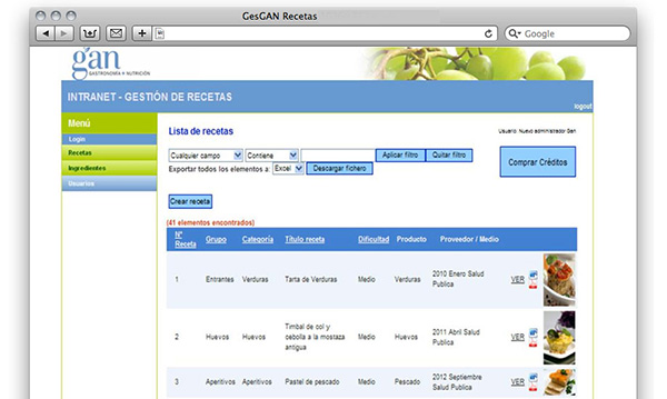 GAN pone a su disposición una innovadora aplicación informática multifuncional para la gestión de recetas. GesGAN Recetas permite ordenar y clasificar sus recetas para realizar una valoración nutricional rápida de cada una de ellas.
